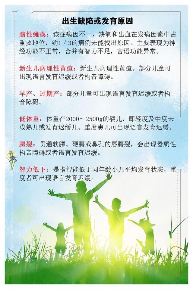 例如唐氏綜合、聽力障礙、孤獨(dú)癥、智力缺陷、腭裂等,這些都有一定概率會(huì)遺傳到孩子身上,并對(duì)孩子的語言發(fā)育造成影響。